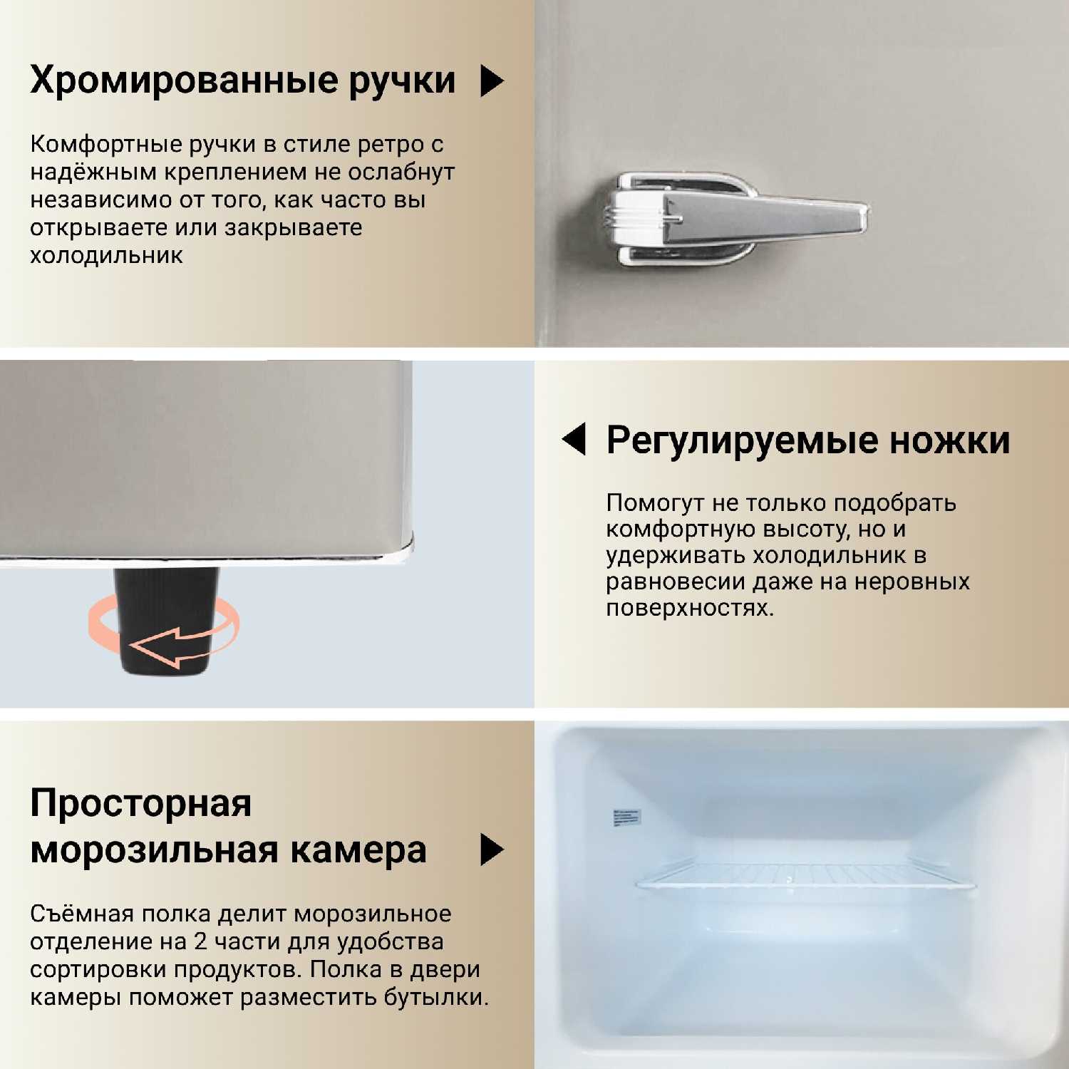 Дизайн является ключевым преимуществом модели. Холодильник выполнен в популярном ретро-стиле, который выглядит оригинально и добавляет изюминку интерьеру. Он доступен в приятных пастельных тонах (например, нежно-бежевый). Стилизация под старые модели, включая неподвижные декоративные ручки, оценивается пользователями как очень удачная и фотогеничная, что делает его не просто техникой, но и элементом декора.