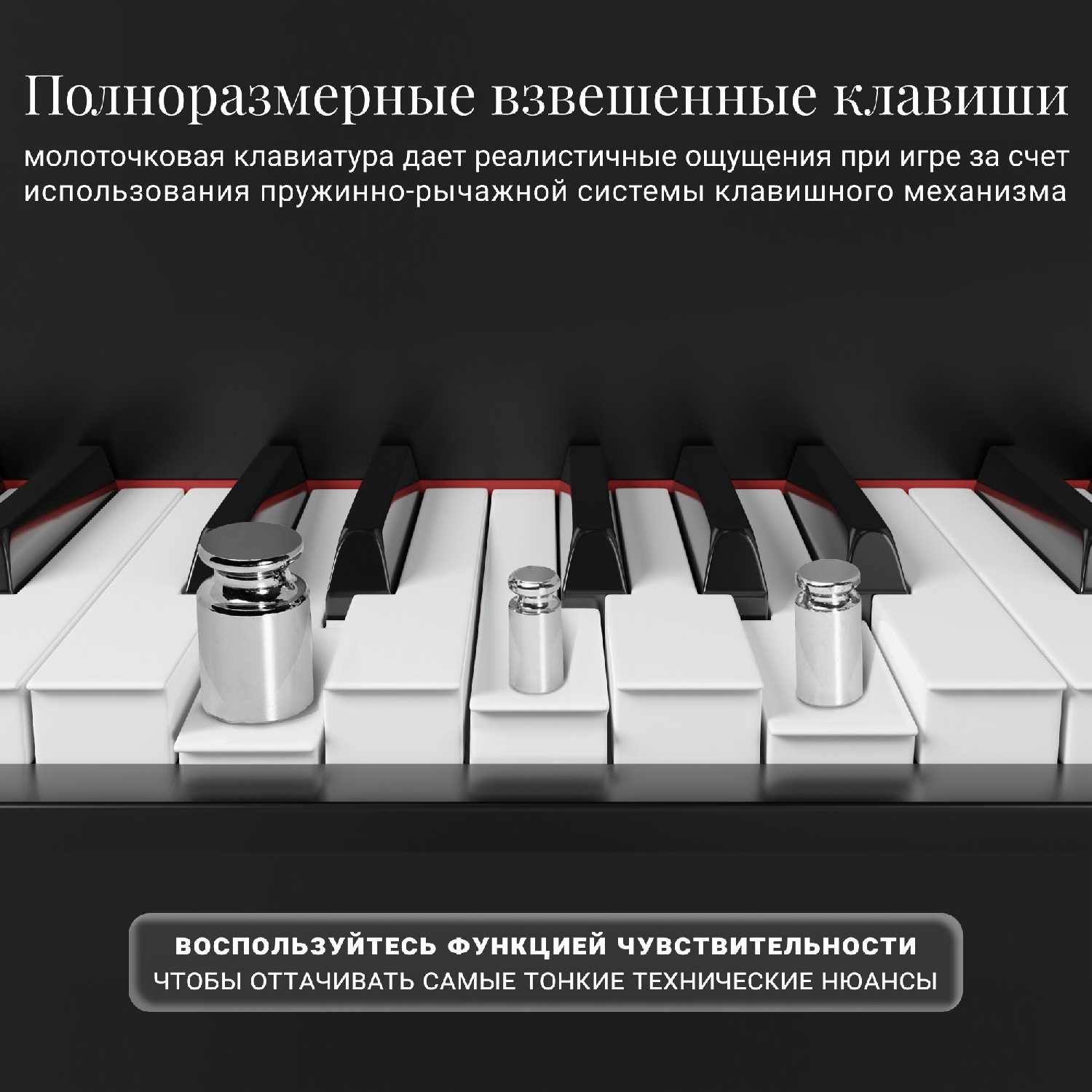 | Функции и опции : | запись песен, метроном, молоточковая механика, обучение, разделение клавиатуры, транспонирование, чувствительность клавиатуры к касанию |