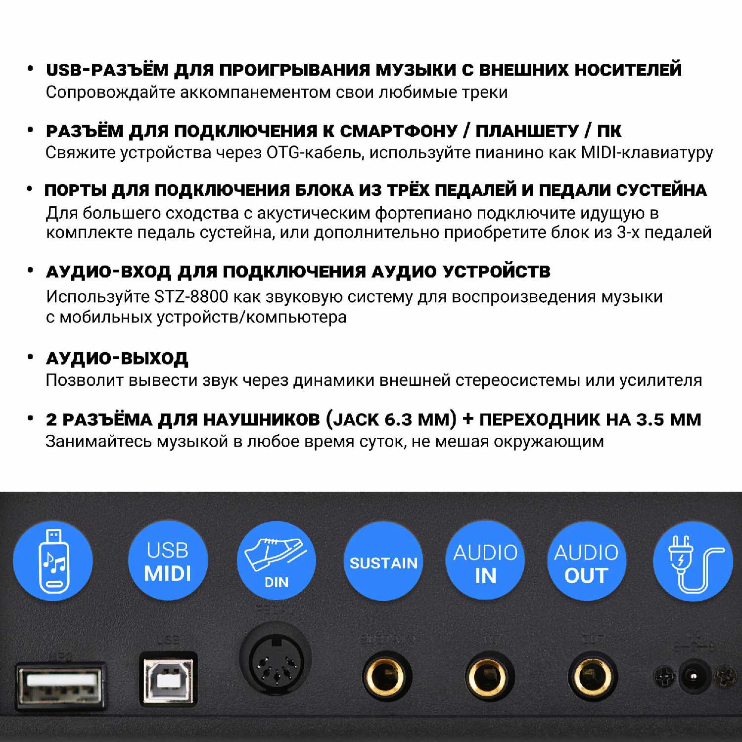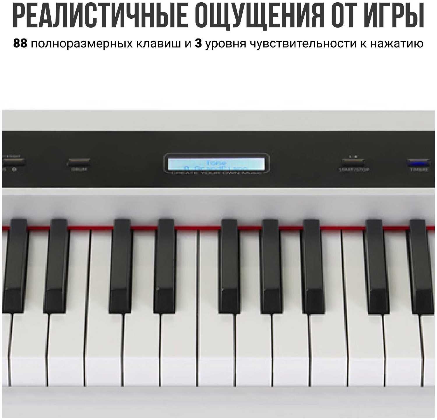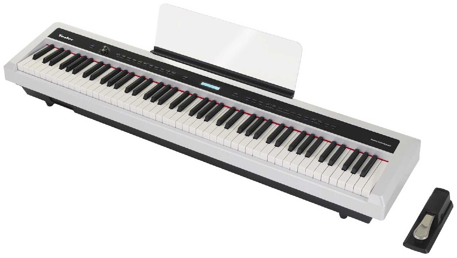 - + Покупали для ребенка. Хотелось приобрести что-то более менее профессиональное. Tesler STZ-8800 вполне соответствует этому критерию. У него полноформатная взвешенная клавиатура на 88 клавиш с молоточковым механизмом. Выдает очень даже качественный звук. За громкость отвечают 2 динамика суммарной мощностью 25 ватт. У других пианино подобной стоимости мощность динамиков была не более 20 Вт. Еще понравилась возможность подключения двух пар наушников. У других моделей можно было подключить только 1 наушники. Очень приятные клавиши. Для нас плюс электронного пианино в том, что его не надо настраивать раз в полгода в отличии от акустического. Еще плюс в компактности и небольшом весе 12,5 кг. У Tesler есть очень хорошая устойчивая подставка под эту модель, называется Tesler U-Type. Планируем докупить. В комплект входит только 1 педаль, но есть возможность для подключения блока из 3 педалей ( приобретается отдельно). Для этого предусмотрено отдельное гнездо для подключения. Есть возможность для сохранения своих композиций. Ребенок очень доволен.