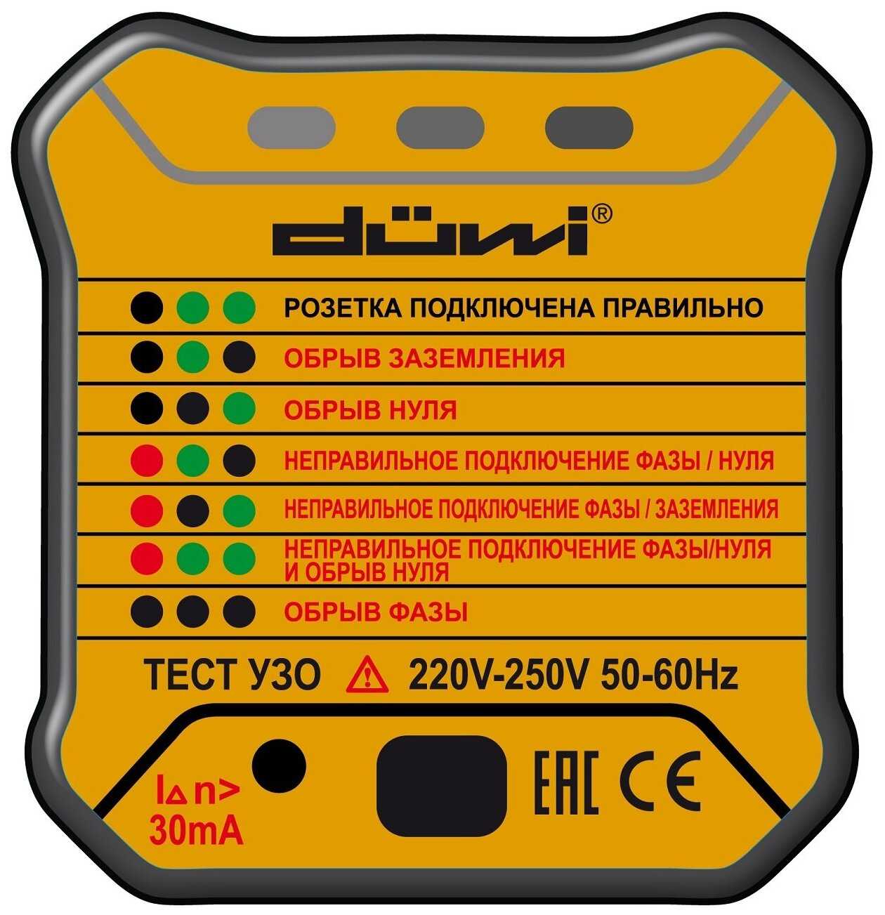 Характеристики:- Тип: тестер УЗО
