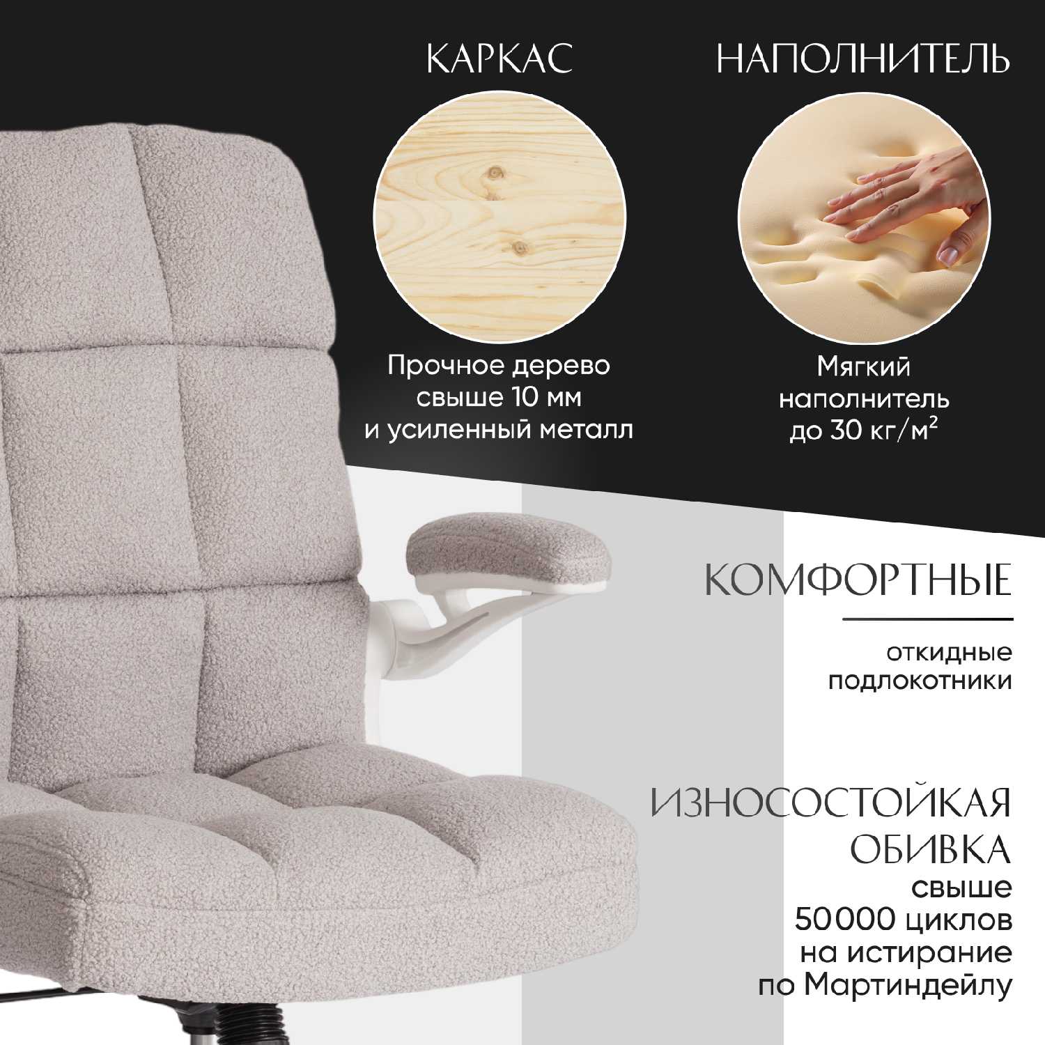 - + откидные подлокотники, обивка букле