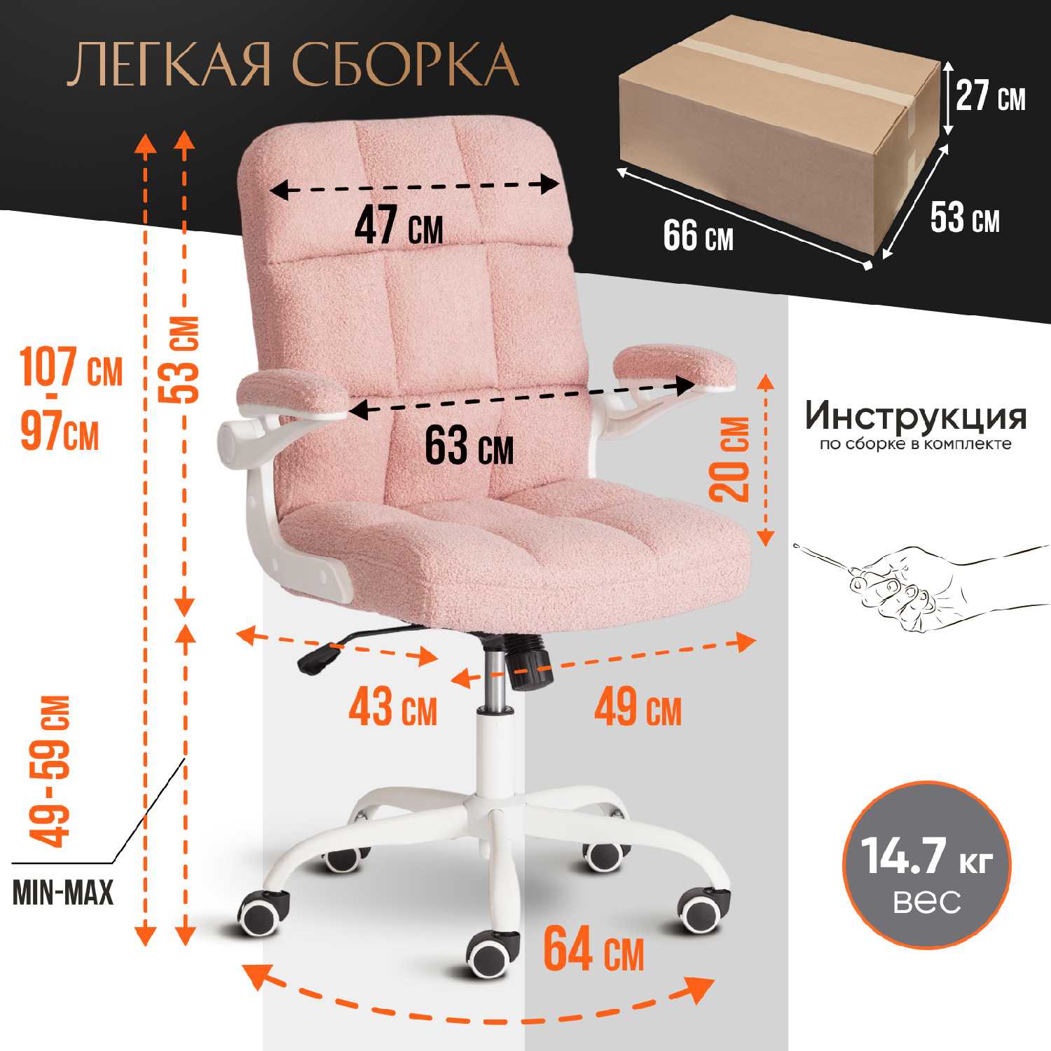 - + Большое, удобное и мягкое кресло. Лёгкая сборка.