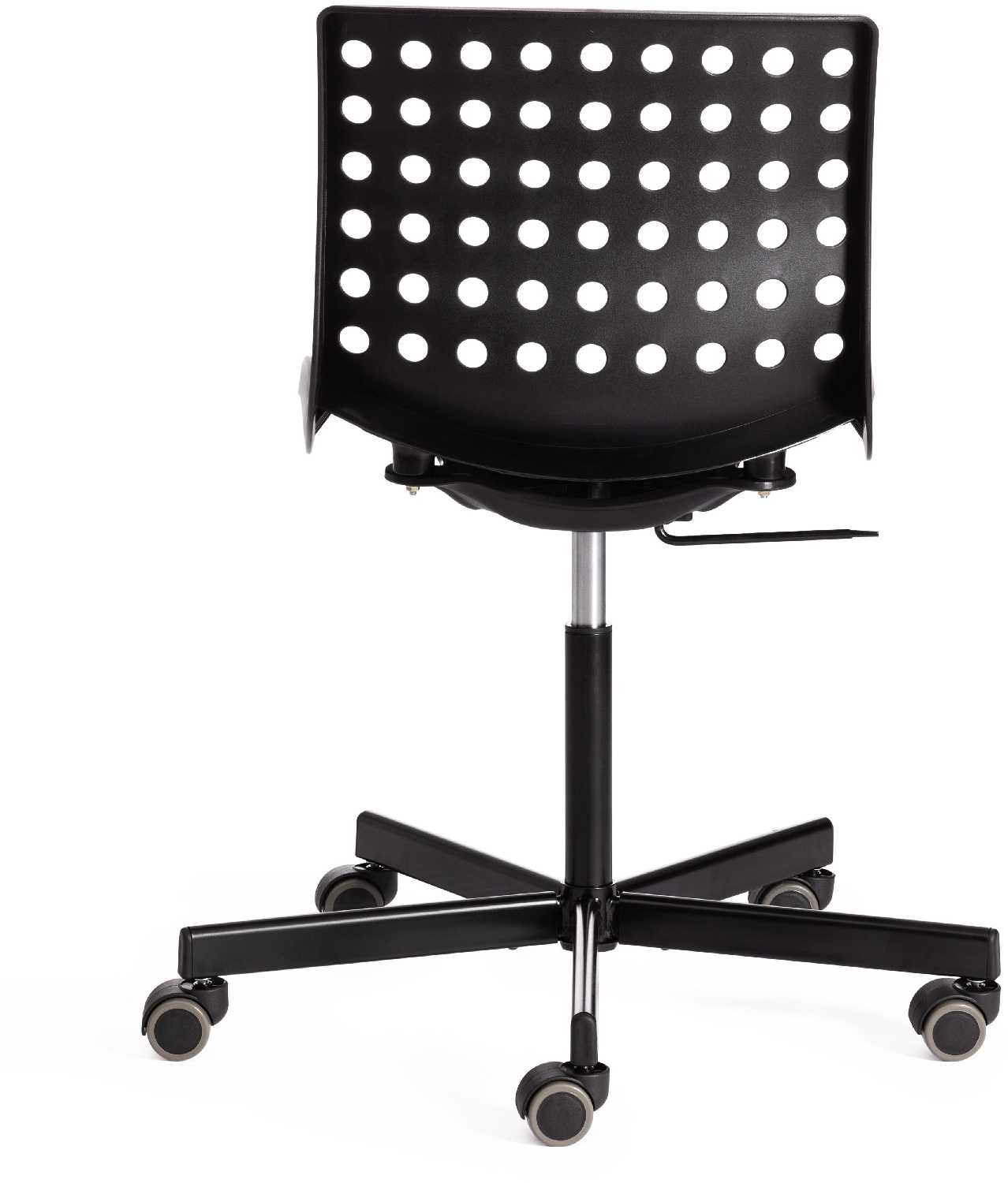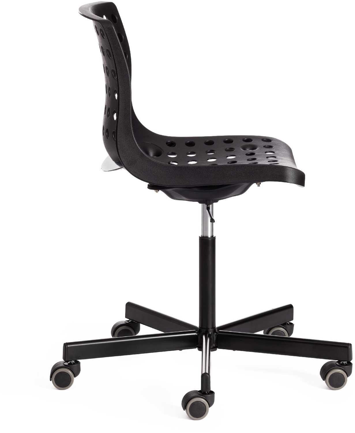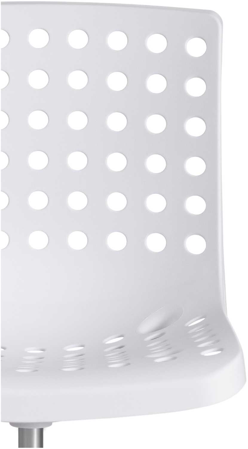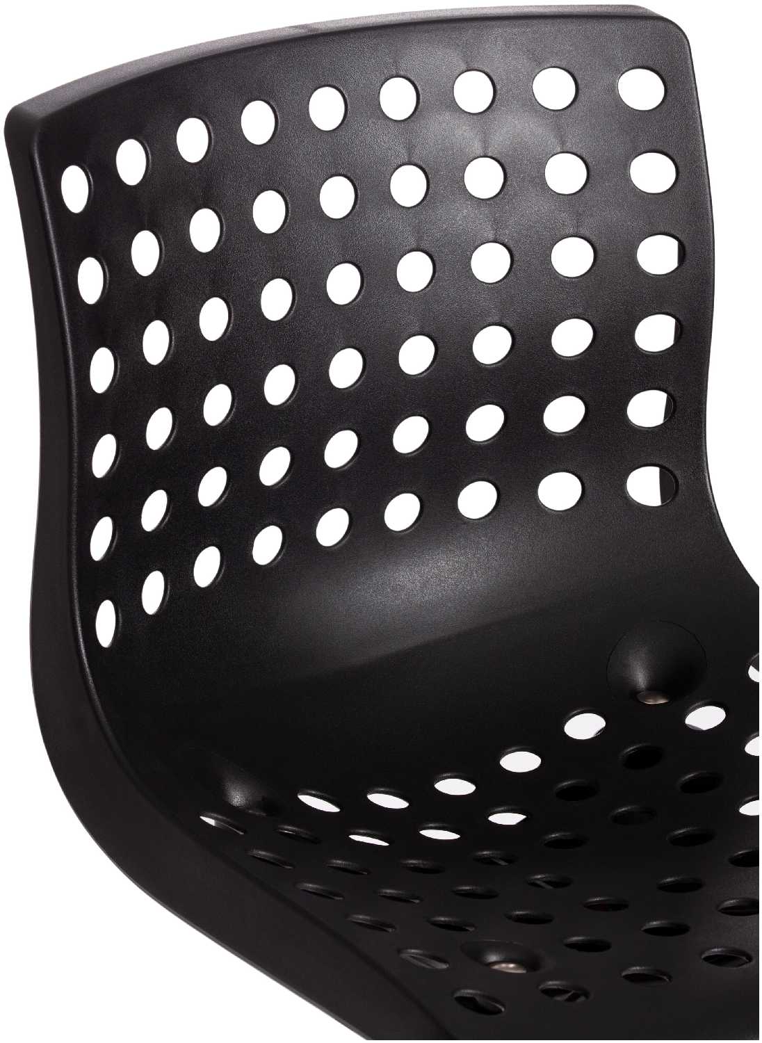 Пластик обладает эластичностью, обеспечивая амортизацию, но спинка заметно прогибается при сильном упоре. Материал мягче аналогов, например, стульев IKEA, но устойчив к деформации при весе до 100 кг. Поверхность легко оттирается от загрязнений благодаря отсутствию текстильных вставок.