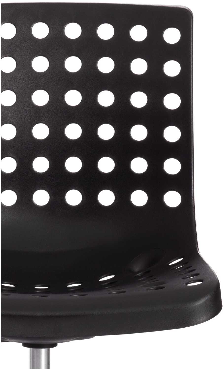 - Перфорация сиденья и спинки улучшает циркуляцию воздуха при многочасовой работе.