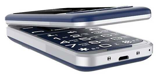Телефон имеет отдельные кнопки Принять/Сброс вызова и кнопкой СОС на лицевой флипп крышке телефона,