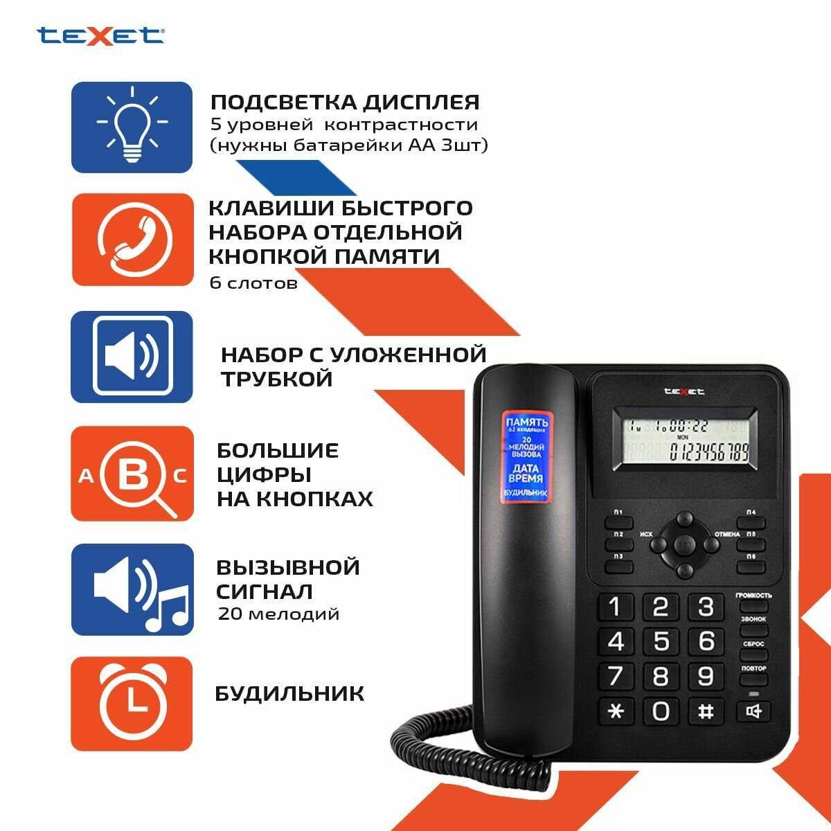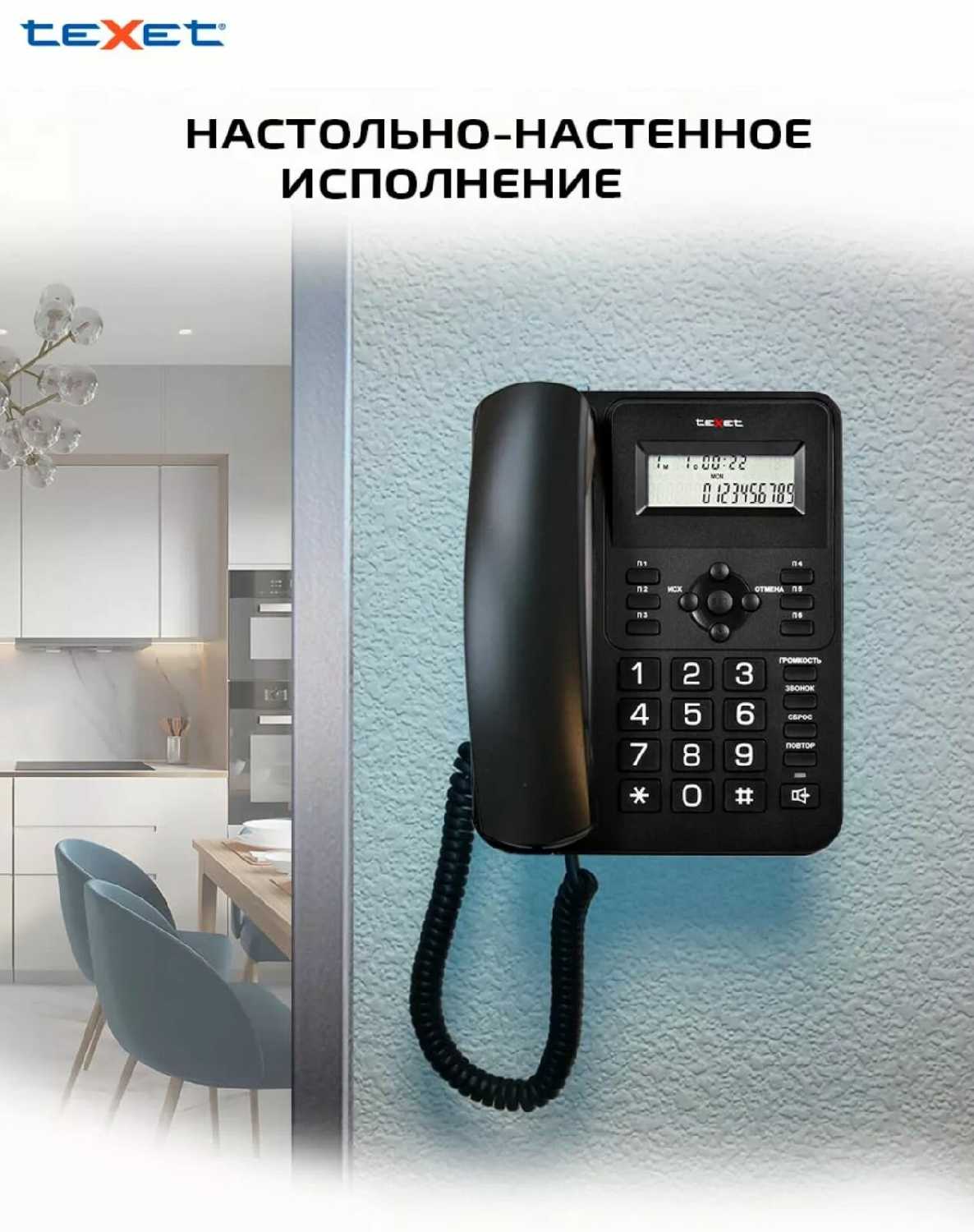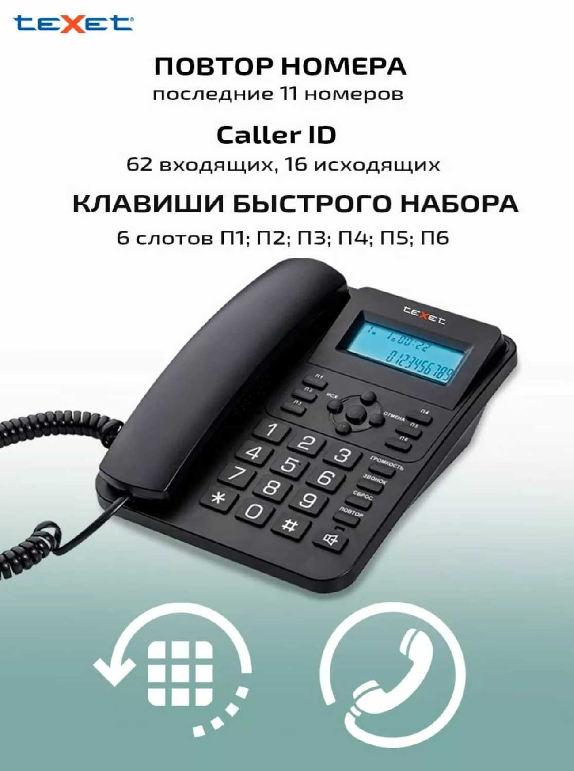 - + Крупные цифры; есть возможность запомнить шесть номеров; информативный дисплей (чтобы не отключался нужно вставить три батарейки типа «АА») , на котором легко можно настроить дату и время; можно повесить на стену; есть два режима работы, которые легко переключить слева тумблером (тональный и простой); громкая связь.