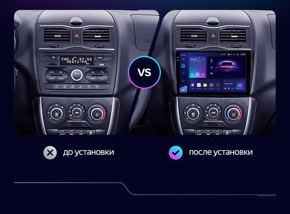 Установили сами в гранту, всё понятно и просто. Каждый проводок подписан, не перепутать. Звук бомбовый, экран сочный. Итог такой: муж просто счастлив)) продавца рекомендую