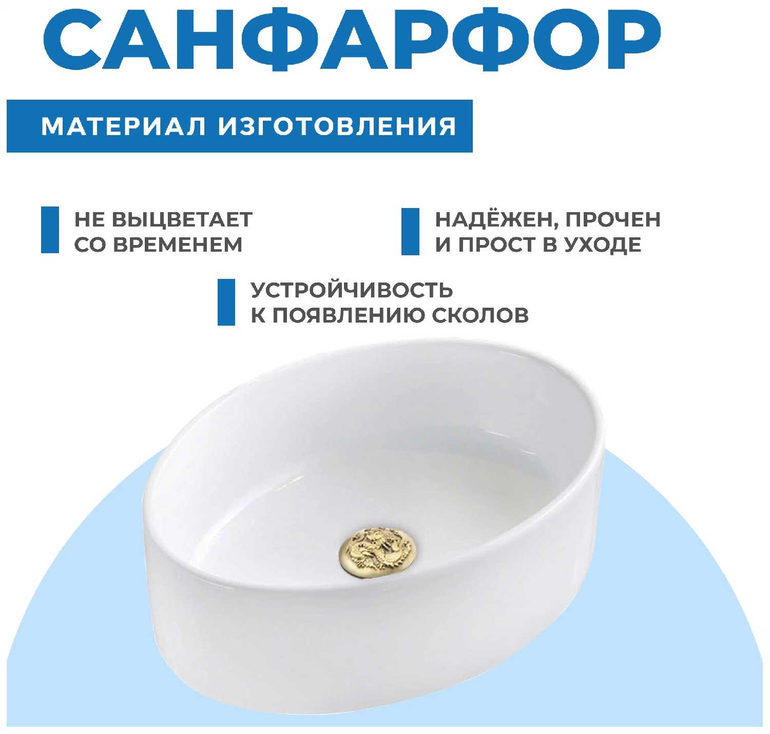 Гладкая глазурь легко очищается от мыльного налёта и известковых отложений стандартными средствами. Пользователи не сообщают о появлении стойких пятен или царапин при регулярной эксплуатации. Это делает раковину практичным выбором для занятых людей, ценящих минимализм в уборке. -