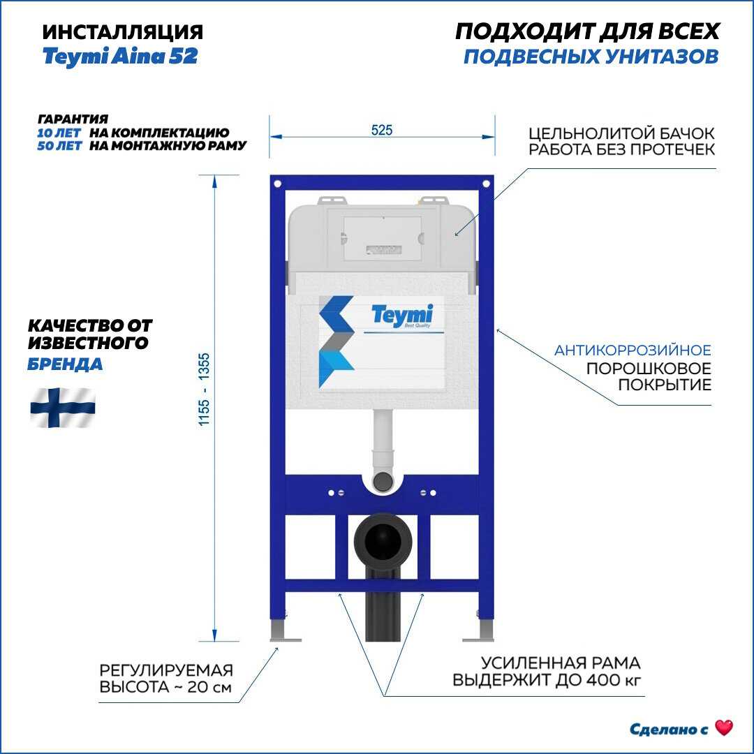 27 отзывов пользователей o Teymi Инсталляция Aina 52 + клавиша смыва Aina + унитаз Lina Pro