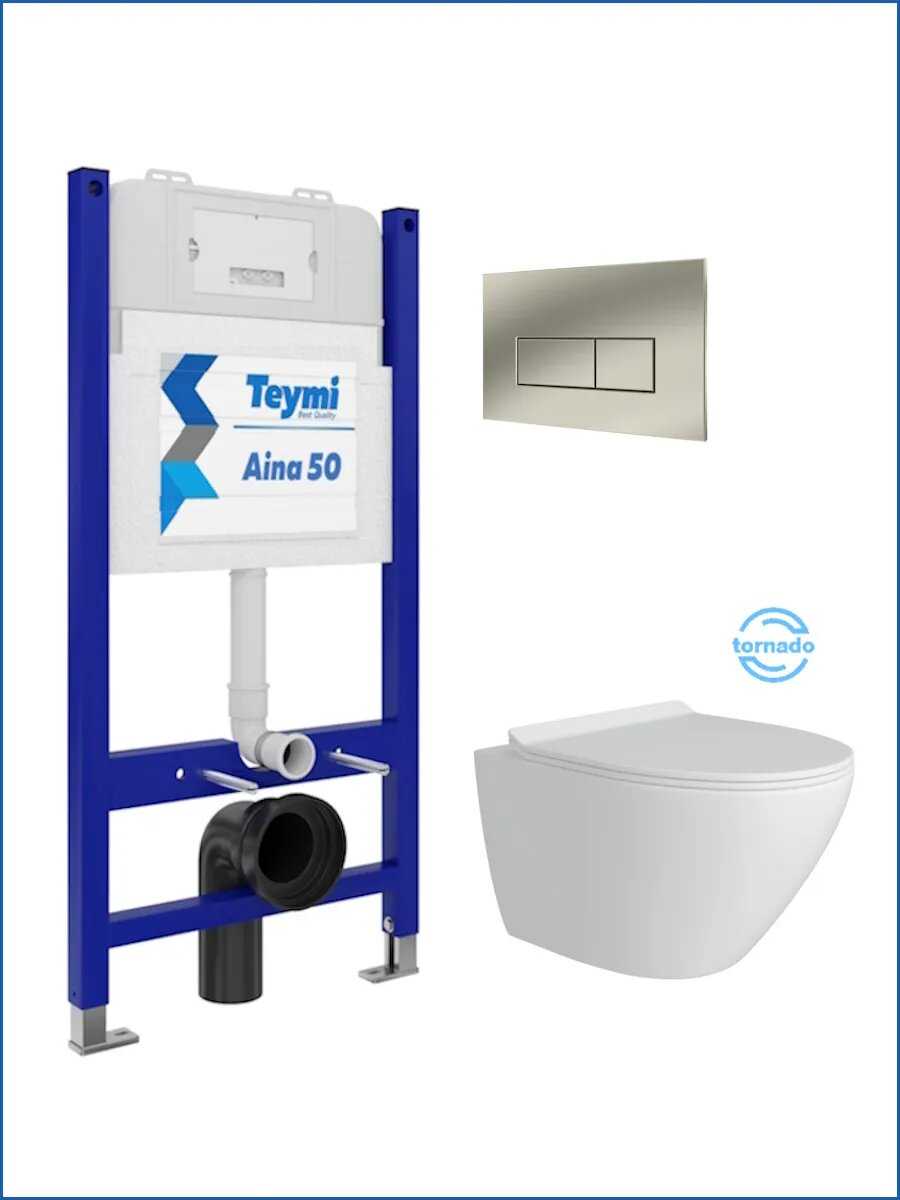 Отзывы о Инсталляция с унитазом комплект 5 в 1 Teymi унитаз подвесной безободковый Lina Pro Vortex [F14473]