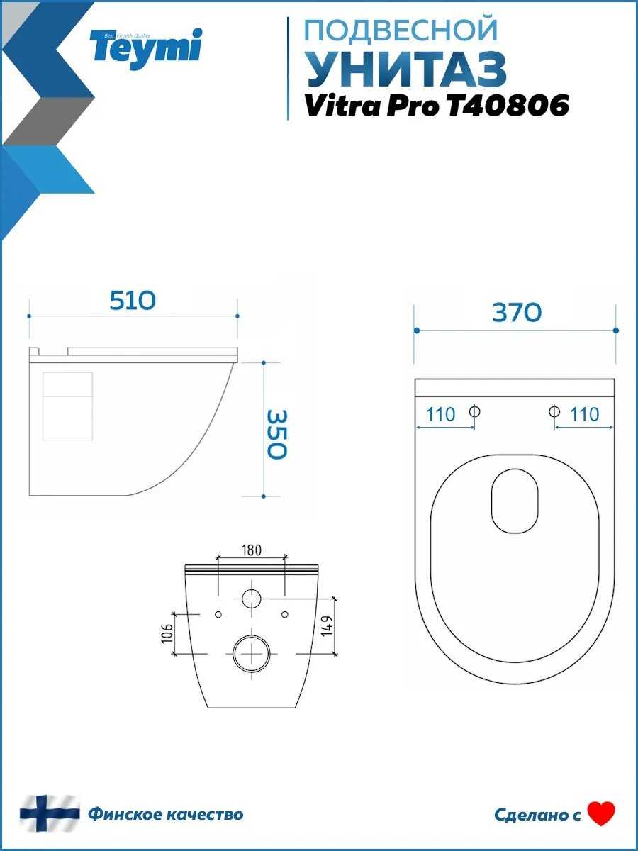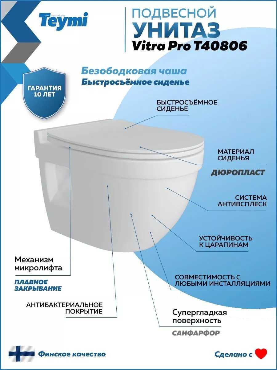 Отзывы о Инсталляция с унитазом комплект 5 в 1 Teymi унитаз подвесной безободковый Vitra Pro (F00676)