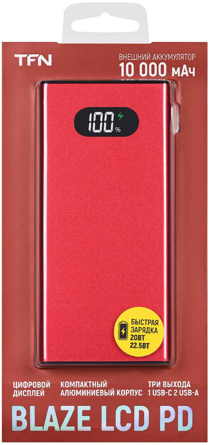 Лучшие цены сегодня на TFN АКБ 10000mAh Blaze LCD PD/красный