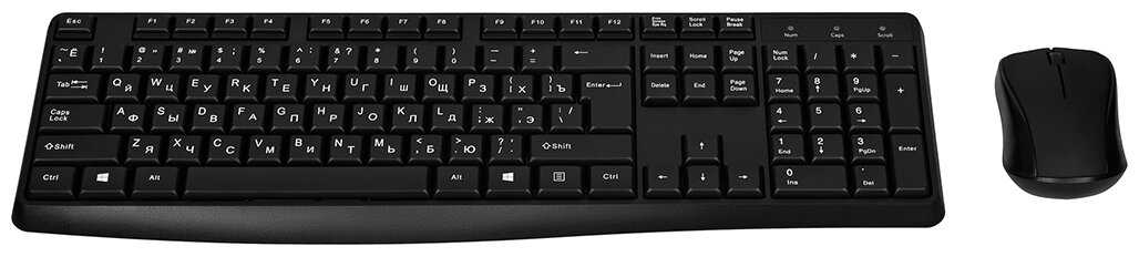 - + За свои деньги вполне адекватный набор.Нужен был именно беспроводной. Клавиатура печатает, мышка работает) В комплекте уже есть элементы питания.