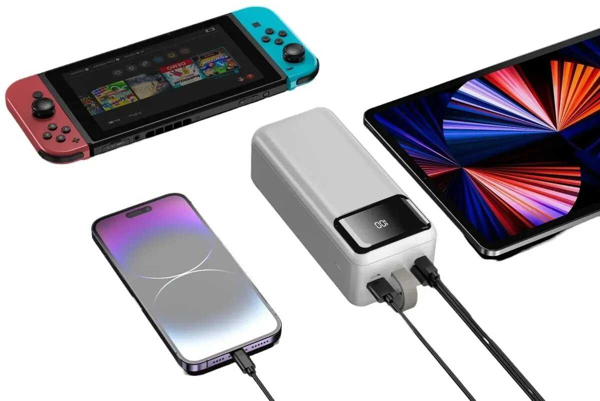 При одновременном подключении двух устройств, например, смартфона и аксессуара, power bank обеспечивает стабильную работу без отключений. Однако быстрая зарядка в таком режиме недоступна, а суммарная мощность распределяется между портами. Пользователи успешно заряжали до трёх гаджетов, включая мощные аксессуары, используя переходники. -