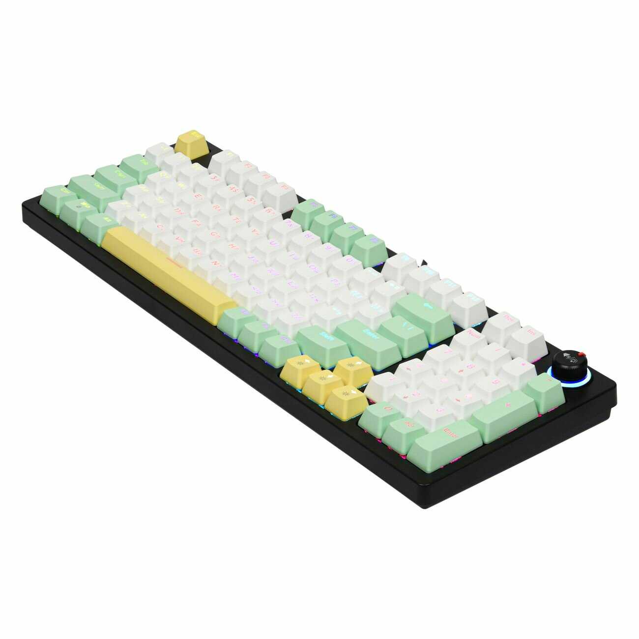 Клавиши выполнены из тонкого пластика с нанесенными методом сублимации символами, которые не стираются со временем. Их дизайн и цветовая схема (часто в ретро-стиле) многим пользователям нравится. Кейкапы стандартные и их можно снять для чистки, однако из-за отсутствия пуллера в комплекте делать это нужно с большой осторожностью, чтобы не сломать крепления. -