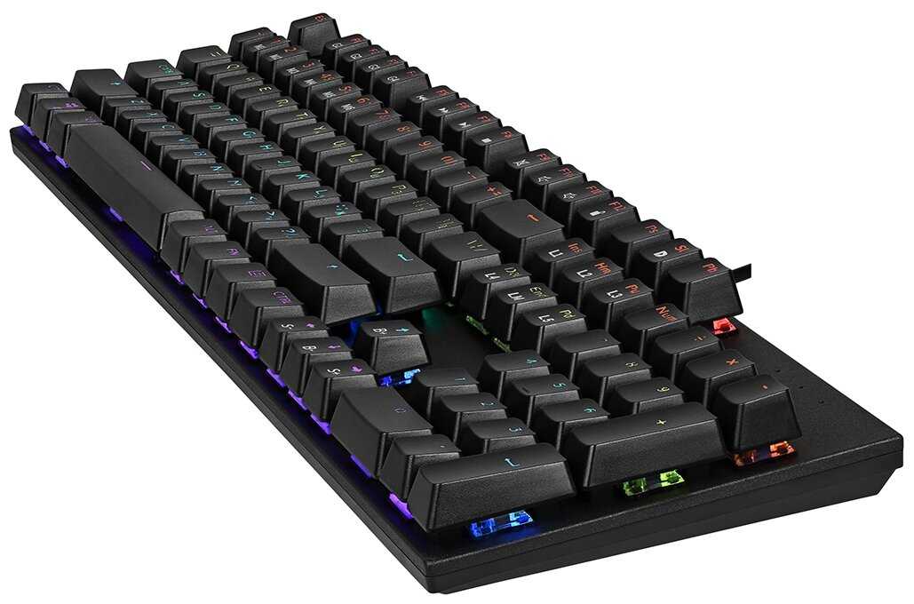 - + Приятная цена, съёмный провод, множество режимов подсветки, двойное литьё на клавишах, красивый внешний вид, макросы.