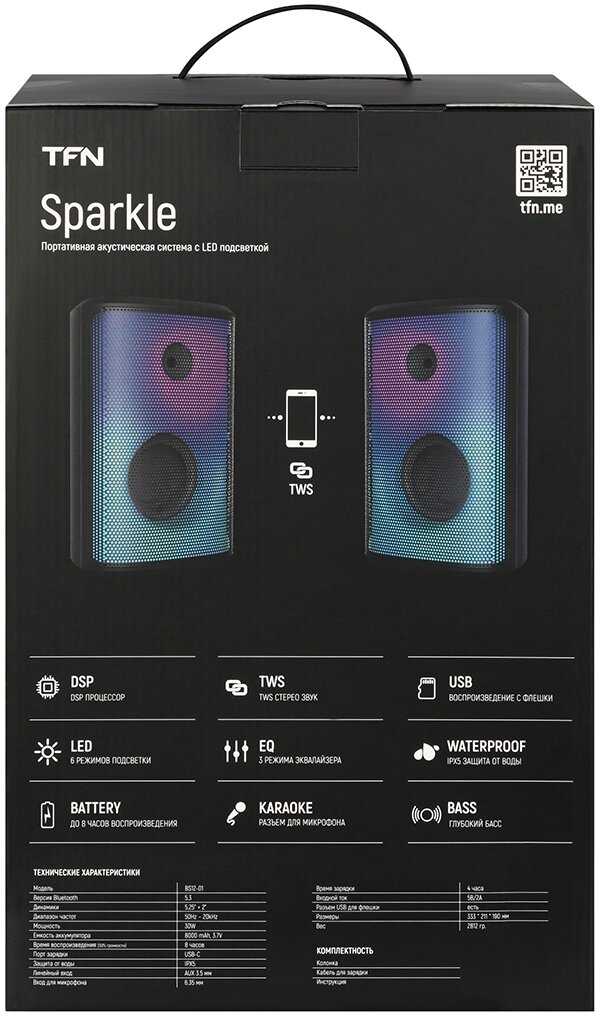 Отзывы о Портативная акустика TFN Sparkle 30 Вт (TFN-BS12-01BK)