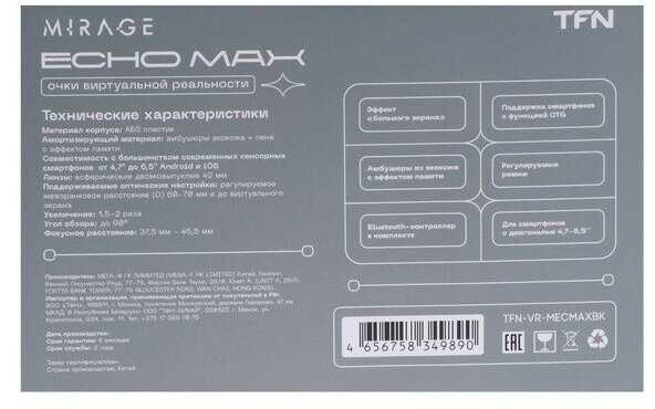 Особенности : | регулировка межзрачкового расстояния, регулировка фокуса, акселерометр, встроенные наушники |