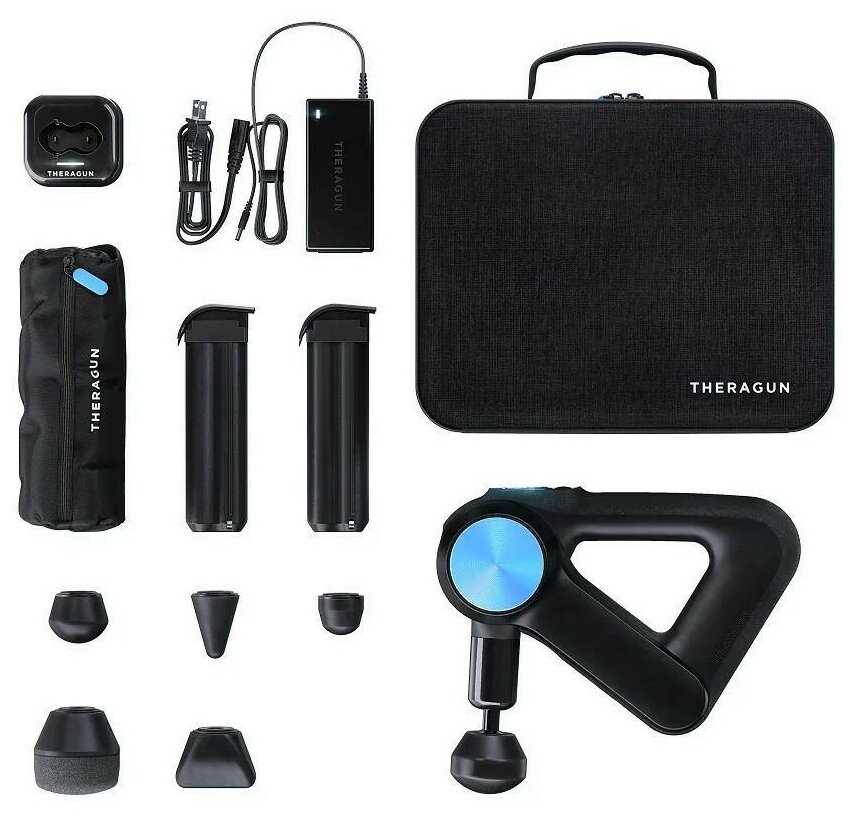 Подробная комплектация : | Theragun 24K Gold PRO • Защитный кейс для переноски • 6 насадок в мягком футляре • SuperSoft • Демпферная • Стандартная шаровая • Клиновая • Большой палец • Конусная • 2 перезаряжаемых литий-ионных аккумулятора • Зарядное устройство для литий-ионных аккумуляторов |