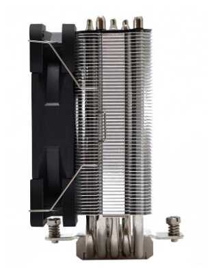 - + Отличный охлад. Брал в корпус cooler master q300l (159мм) для процессора i5 11500. Выбор пал именно на него, так как по высоте большие куллера не влезают, а здесь ещё и 5 тепло трубок. Слоты памяти не перекрывает, по этому можно ставить все 4 плашки даже с большими радиаторами . С отключенными лимитами в стресс-тесте при жарящей видеокарте в 200 ватт, куллер хорошо отводит 120 ватт. Конечно такая нагрузка может быть только в стресстестах, так как в обычных задачах (играх) больше 75 ватт процессор не выдаёт. Покупкой доволен...