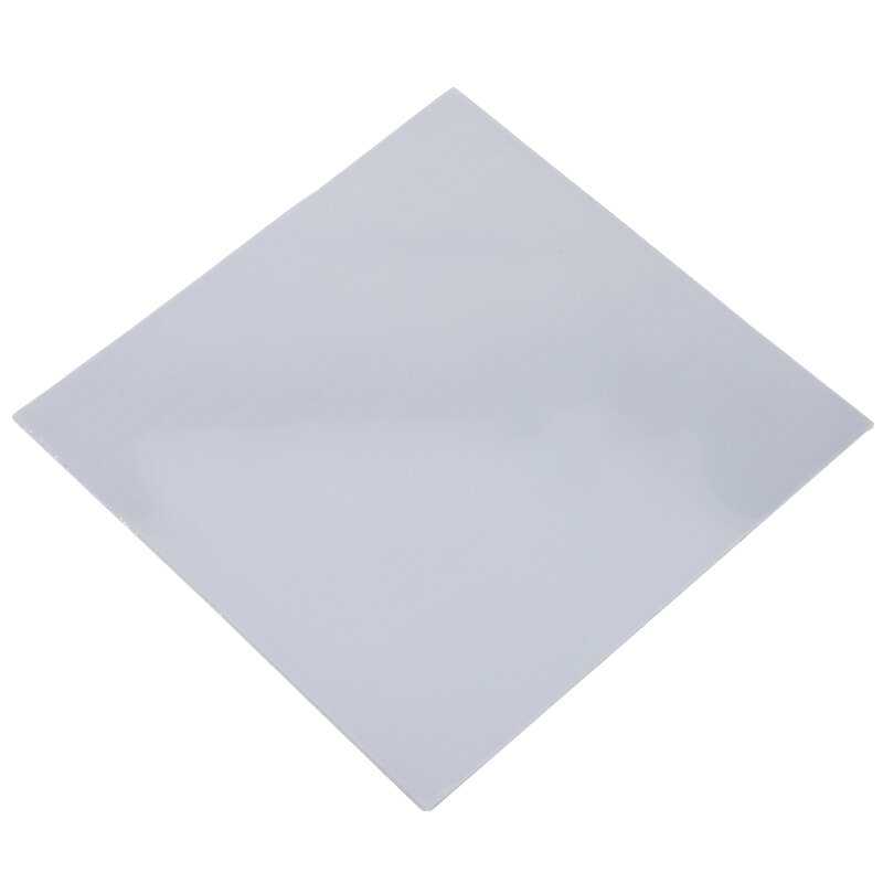 По консистенции похоже на очень густую термопасту, раскатанную в пластину между листами защитной пленки. Адгезия умеренная, но радиатор на прокладку не прилепить. Армирования нет. При нагреве изменения пластичности не замечено. Заявленный наполнитель керамика, нитрид кремния (Теплопроводность: 62,8 Вт/(м·К) при 300 К; электрический изолятор).