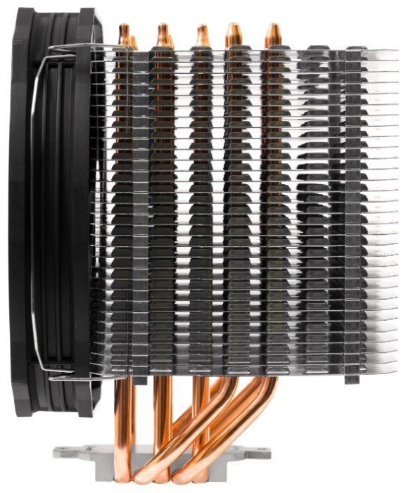 Очень эффективный теплоотвод. Похоже на то, что полностью соответствует заявленным 200 Вт. Радиатор огромен. Один из самых тихих в своем ценовом сегменте благодаря вентилятору непривычно огромного размера. Приемлемая цена.