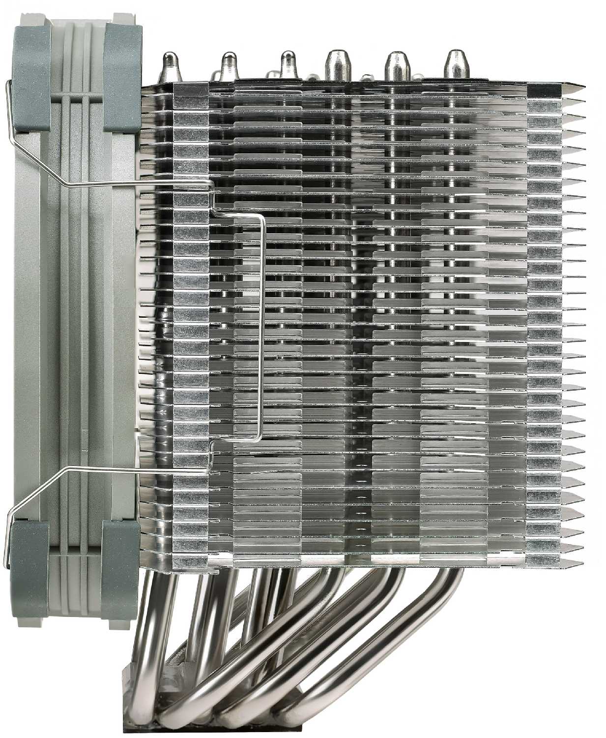 высота радиатора (без учета вентилятора) - 158 мм, габариты вентилятора 140x152x27 мм