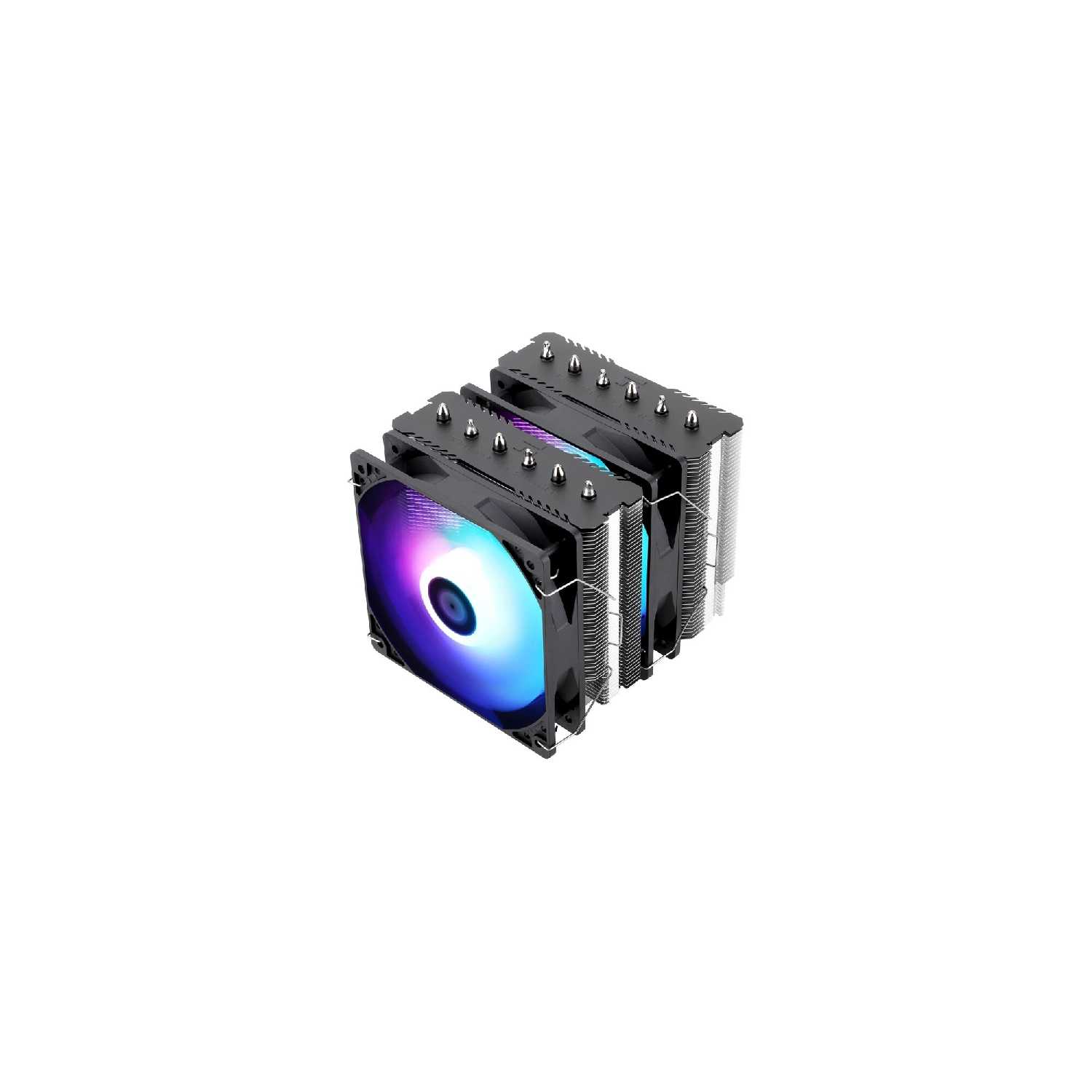 Кулер оснащен адресной RGB-подсветкой, управляемой через 3-pin ARGB-разъемы материнских плат. Совместимость с ПО типа ASUS Aura Sync или MSI Mystic Light подтверждена для синхронизации эффектов. Яркость и цветопередача оцениваются как отличные, но на старых платах без поддержки ARGV подсветка может не функционировать. Физическое подключение упрощено благодаря продуманной разводке кабелей и переходникам в комплекте. -
