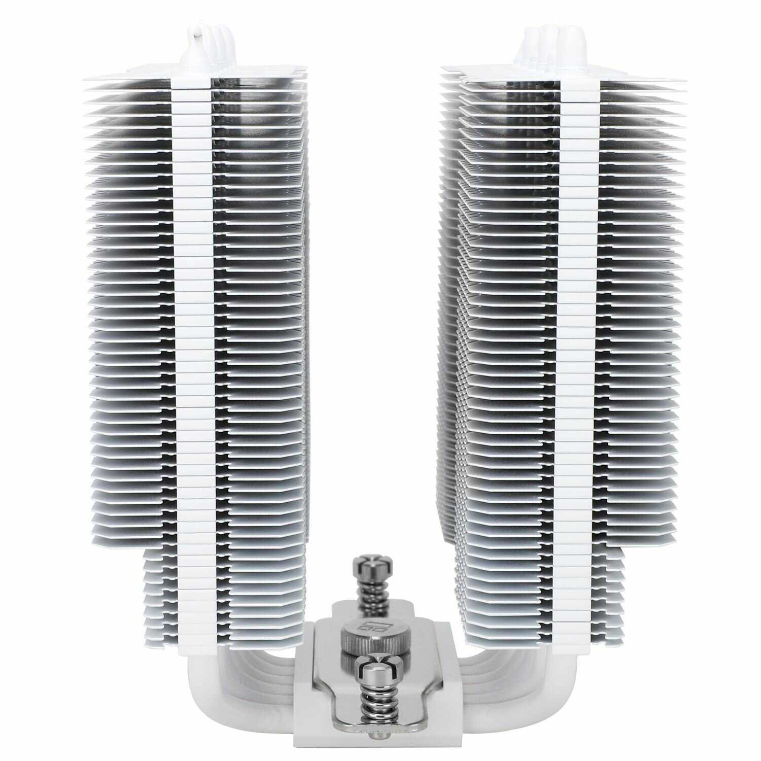 Отличный кулер для белой сборки! Башня хорошо вписывается в общий вид. Держит максимальную температуру в 72 градуса для ryzen 7700 при ограничении теплопакета в 90вт. Вентиляторы не шумят. Максимальные обороты 1,5к. ARGB подсветка стильно дополняет массивность радиаторов.