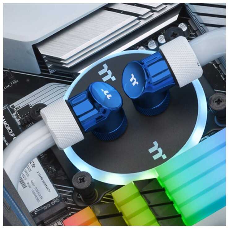 В подробностях. Для больших корпусов не достаточная длина трубок, с другой стороны, в маленький корпус радиатор просто не поместится. Отсюда вывод, что не хватает муфт для удлинения трубок. Нет ни крана, ни тройника для организации линии слива жидкости. После первого включения сразу же умер один блок управления подсветкой. Панель подсветки радиатора уже не подключить. Управления скоростью вращения вентиляторов и подсветкой от материнской платы нет, только программно через блок управления от usb. Программа постоянно нагружает процессор на 13%. Не охлаждает, а нагружает - это бред. Помпа , основа системы, очень шумная и вибрация от нее дикая на максимальной скорости. Пришлось включить на 1/4 от максимальной, и то, слышно даже на фоне вентиляторов. Вернее сказать, что только помпу и слышно, а вентиляторы нет. На максимальной скорости прикольный эффект бурления воды. Прямо видна мощь водянки. Лишен этого наслаждения ). На помпе не однозначная маркировка регулировки оборотов, со слепу сломал удлинитель регулятора. Регулировка с завода выставлена на максимум. Маркировка ступенчатой регулировки, в деле плавная резистором. Сломал - не вернуть. Будут средства заменю на нормальную D5 c pwm управлением от Bykski (прикрепил фото). Отличные радиатор, водоблок (особенно крепление к плате, но нет крепления для lga1700), фитинги. Тихие вентиляторы (на минимальных 500-600 оборотов не слышно, на максимальных 1500-1800 об/мин приемлемый не раздражающий шум, на уровне с видеокартой gigabyte 4070ti). Хотя с таким радиатором вентиляторы ближе к декору ). Нет в комплекте инструмента для обработки трубок. Водяная часть на 5, электрическая с натяжкой на 3. С охлаждением справляется, но комплект работает частично, и напрягает шумом помпы. В итоге за такую цену не рекомендую покупать. Покупал за 33999. Покупкой очень не доволен.