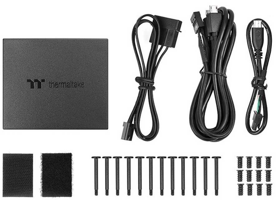 Провода длинные (около 50 см) и в оплетке, что удобно для больших корпусов вроде Lian Li O11, но в компактных моделях их трудно уложить. Они несъёмные и нестандартные, подключаясь только к контроллеру TT, что ограничивает гибкость. Пользователи отмечают хлипкость оплетки и необходимость термоусадки для белых сборок. Два USB-кабеля в комплекте избыточны, один просто сворачивается. В целом, удобство зависит от размера корпуса, но требует аккуратности. -