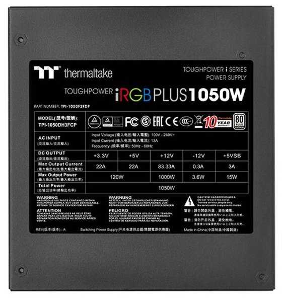 Характеристи Thermaltake Toughpower iRGB PLUS 1050W Platinum