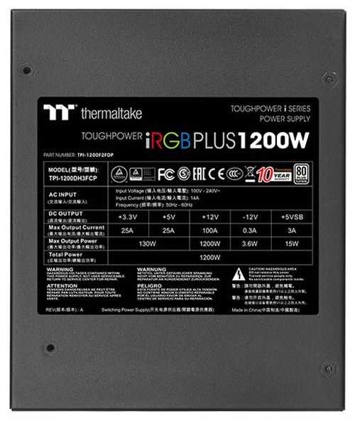 Характеристи Thermaltake Toughpower iRGB PLUS 1200W Platinum