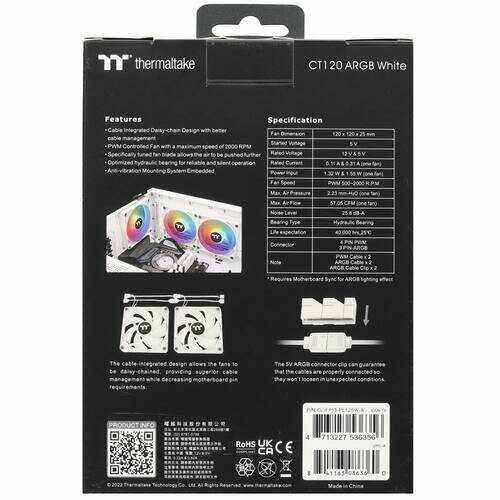 Характеристи Thermaltake Вентилятор (CL-F153-PL12SW-A)