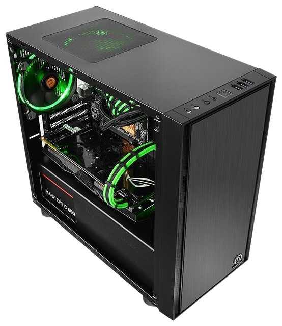 - + Качественно сделан. В комплекте весь нужный крепёж с запасом. Крепеж жёстких дисков прорезиненный. Ножки прорезиненные. Видеокарта встанет любая. Вентилятор на задней панели. Место для проводов. Дизайн. Подсветка только кнопки питания и не яркая.