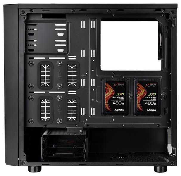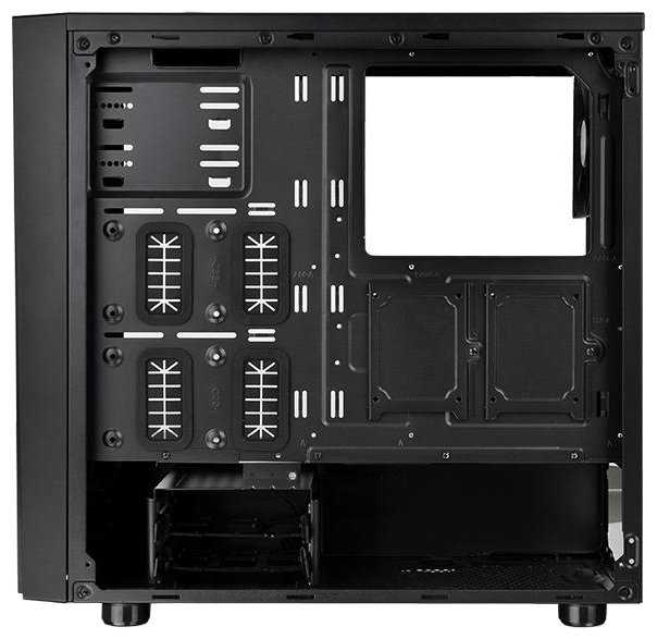 - + Боковое стекло вместо акрила, 4 usb порта. Легкий доступ к жестким дискам и кабелям через вторую крышку.