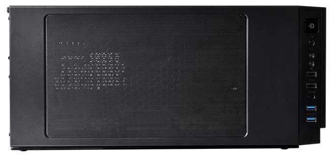 Корпус все же больше под водянку - на очень горячих сборках, может быть проблема с передним задувом. Впереди почти глухая консоль. Маленькие перфорации по боками и небольшая щель снизу.