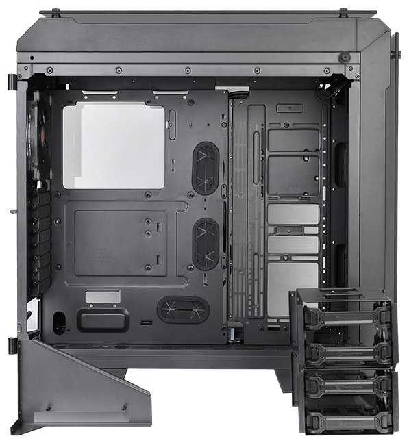 Оочень много внутреннего пространства. Внешне симпатично смотрится.Легко добраться до компонентов внутрь корпуса,дверки боковые на петлях.(да и верхняя крышка легко снимается) Идеальный варик для построения кастомного охлаждения водой.