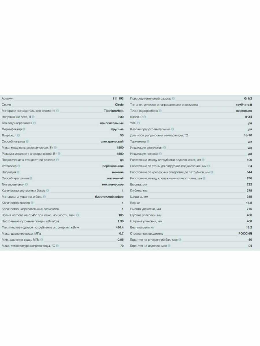 Системы защиты : | УЗО, обратный клапан, от перегрева, предохранительный клапан |