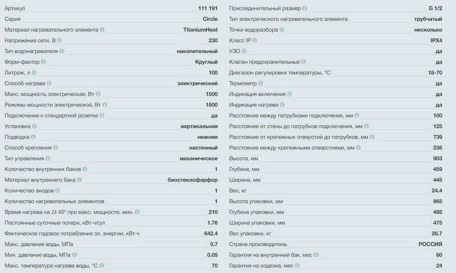 Характеристики накопительных водонагревателей | |