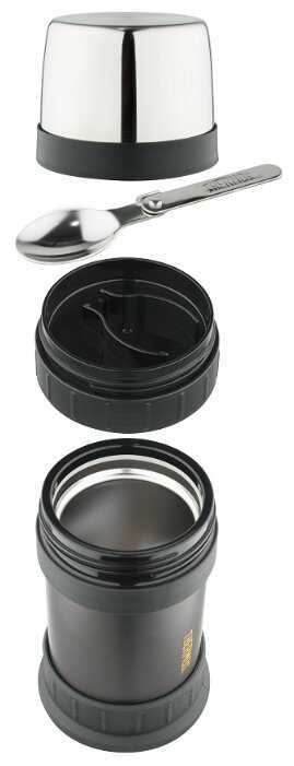 Второй термос этой фирмы в моей коллекции со складной ложкой, у них есть еще одна похожая модель. Однако здесь есть резиновые кольца, удобно держать и повышается износостойкость. Термос довольно вместительный, тепло держит несколько часов, хватает пару раз перекусить. Ложка удобная, складная, без острых краев.