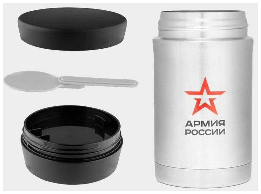 - + Термос с ложкой в комплекте. Еда горячая до обеда точно будет. Брал на СВО и очень доволен.