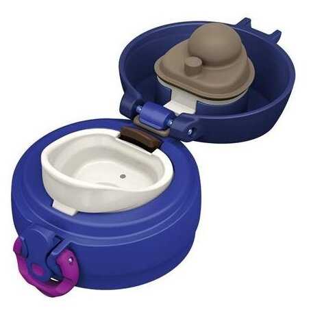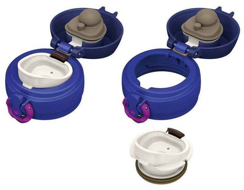 - + Очень лёгкий, шикарный глубокий сине-фиолетовый цвет, воду не пропускает. Крышка при полном открытии фиксируется, и не падает на нос, когда пьёшь. Напиток вытекает равномерно не самой огромной струёй - захлебнуться не получится.