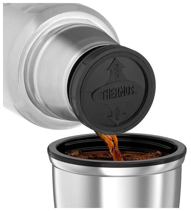 - + Обалденный термос. Достаточно широкое горлышко. Крышка с проточками и утолщением в месте проточек (можно наливать в темноте). Эмблема уже не наклейка, как на 0.47 версии. Отличная ручка - стильная, надежная, удобно наливать. Поркаска - качественная, матовая, не отваливается. Тепло держит долго. Кружка-кышка - удобная и красивая. Пользуюсь продукцией фирмы Thermos уже довольно-таки долгое время и она меня еще никогда не подводила. Покупкой остался очень доволен и, соответственно, всем рекомендую к приобретению этот термос.