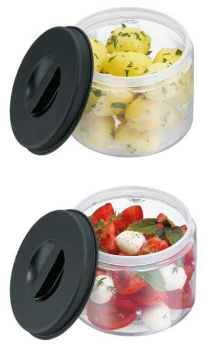Вместительный - - Крышки контейнеров не удобные, если сильно горячее положить...