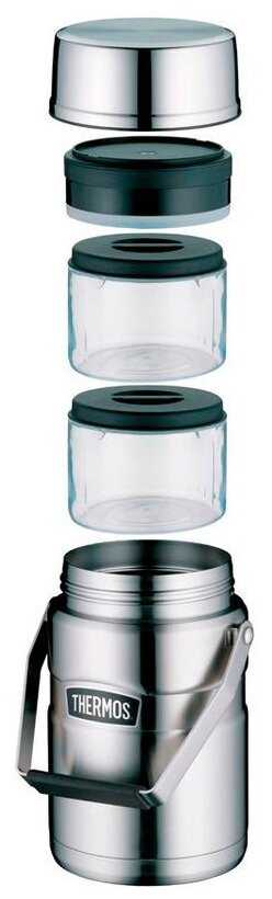 - + Прочный, необычный термос, вмещает два вторых блюда, с ручкой.