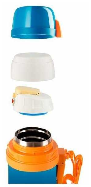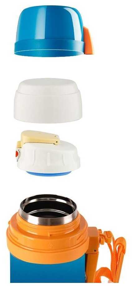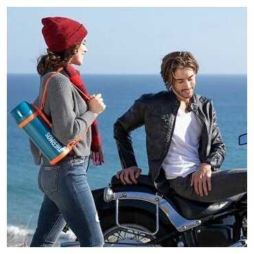 Особенности : | вакуумный, кнопка-клапан, крышка-чашка, непроливайка, носик для питья, отверстие для питья в крышке, ремень для переноски, ручка на корпусе |