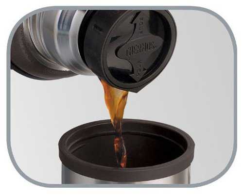 - резьбовая пробка выполнена из пластика с резиновым/силиконовым уплотнением, имеет продольные сечения с двух сторон и позволяет пользоваться термосом, не откручивая пробку полностью, тем самым сохраняется температура жидкости внутри сосуда;