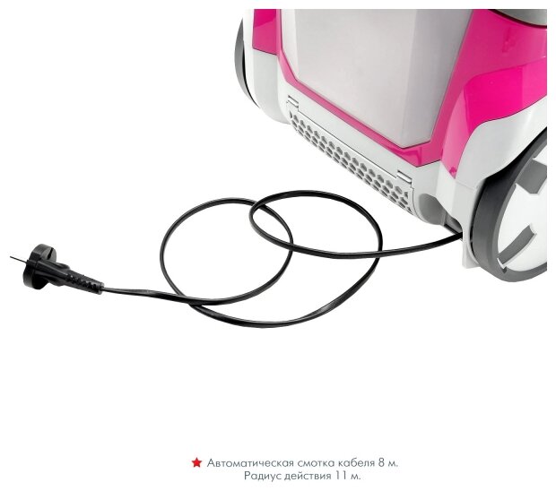 - Длинный сетевой шнур (отмечается в отзывах) дает возможность убирать большие площади без частой смены розетки.