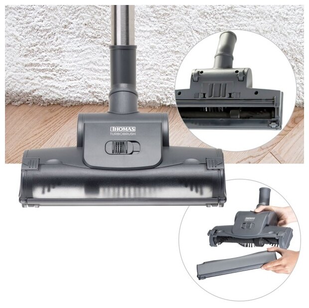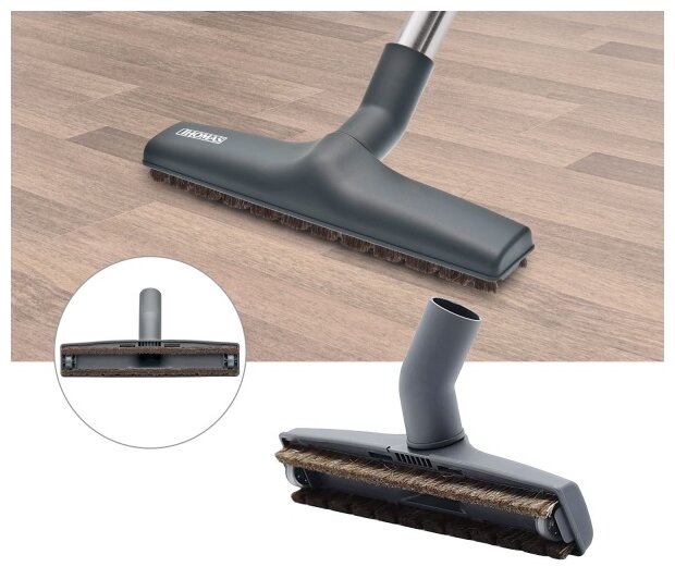 - Насадка для паркета не царапает покрытие, а турбощетка эффективно вычесывает длинноворсовые ковры.